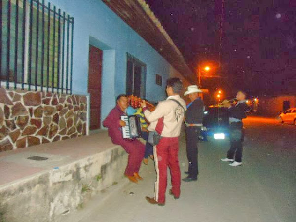 Decidí que en la mañana vendría a tomar fotos a la iglesia para conocer su interior, y al parque también (tiene arboles de caoba en su alrededor) según me dijo un hombre muy amable que me explicó además que todas las mañanas llegan unos jóvenes lustradores cuyos clientes se sientan en unos bancos de concreto sobre los cuales yo le había preguntado que uso le daban. Bueno hijita te sigo contando. . . cuando andaba recorriendo las calles, de repente veo en una esquina a unos mariachis y ellos están entonando unas rancheras alegrísimas, eh? no me puedo perder eso dije yo, estacionándome a un lado en la acera de enfrente donde ellos están, Entonces entendí: los dos picaditos que estaban sentados en la cera son los clientes que están pidiendo las canciones, me invadió una sensación de entusiasmo y me bajé del vehículo con cámara en mano y les empecé a tomar fotos, entonces uno de los clientes que ya anda bastante ?rascado? les gritaba a los mariachis ?miren a la periodista, vuélvanla a ver para que salgan bien en la foto?. El tiempo que estuve ahí escuché rancheras románticas, algunas ni siquiera eran conocidas para mi, en determinado momento al terminar una canción uno de los dos ?picaditos? le dice al cantante: ?Ahora cantate otra, pero una buena, para que le llegue??al alma a esa ingrata?. Como te puedes imaginar, yo no podía parar de reír así que me fui a montar al carro para seguir oyendo la que le llegaría al alma a la ingrata; luego al concluir la canción puse en marcha el vehículo y entonces los mariachis me decían no se vaya, no se vaya todavía, y los dos ?serenateados? también hacían coro: ?por favor no se vaya, quédese otro ratito, acompáñenos otro ratito?.. Estos Segovianos si disfrutan la vida pensé mientras me alejaba del lugar. Ja ja ja ja ja. Bueno ahí te traigo unas fotos que recogen ese momento.