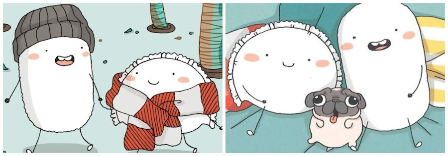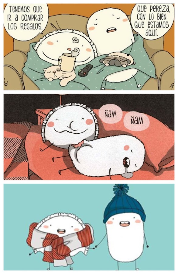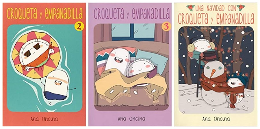 Empanadilla son, como su propio nombre indica, alimentos. Pero además son pareja, así que a lo largo de las páginas de este libro nos vamos a encontrar con situaciones típicas de pareja que, según confiensa la autora están basadas en sus propias experiencias con su novio.Encontramos este libro por casualidad en la sección infantil de la biblioteca. nos hizo mucha gracia el título y los personajes y como es un cómic llamó la atención de mis hijos, así que nos lo llevamos a casa.