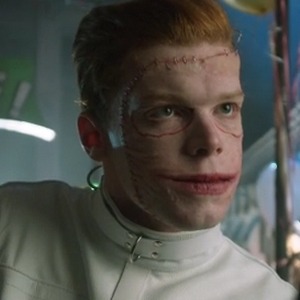 Tampoco lo vemos aqui con el pelo verde, sino con el pelo rojo al estilo de Jerome. Gotham tiene algo y es que combina personajes de la serie Batman con las peliculas.