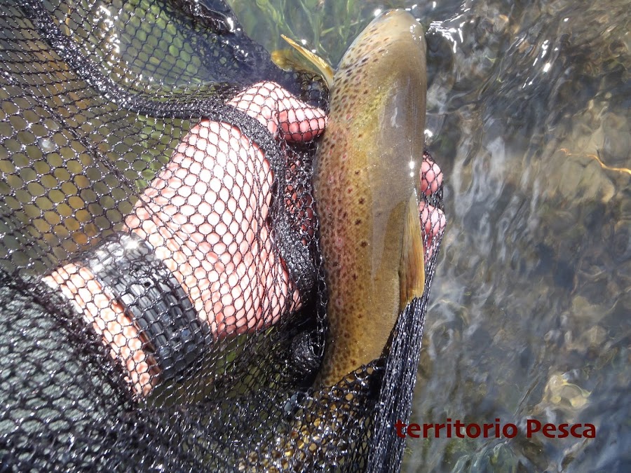 Pero así y todo, este pasado sábado, probamos en mi río favorito. El Torío, en las Hoces de Vegacervera, bajaba alegre, como con prisa por llegar a la Capital y abrazarse al Bernesga en busca del padre Esla. Así que probé en los pocos pozos y raseras que se podía pescar, pero pronto decidí pasar al plan B, río abajo y zona menos encajonada.
