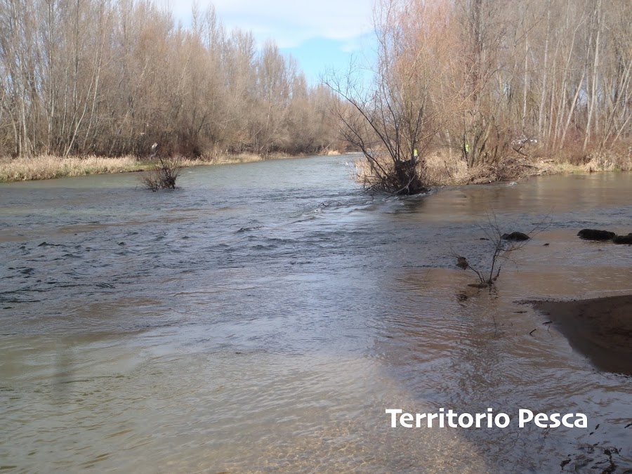 Pescar el río Torío con más de 16m3 por segundo no es tarea fácil, entraña correr riesgos y disminuye la acción de pesca, el peligro viene dado por esas aguas heladoras que en cualquier descuido te pueden arrastrar y las zonas de pesca se reducen al ser ocupadas por corrientes impescables.