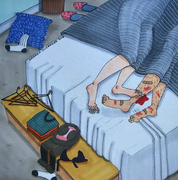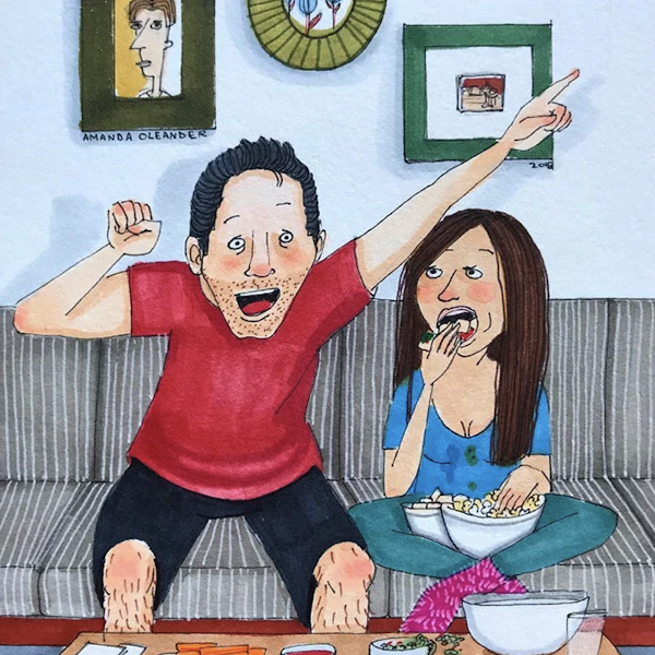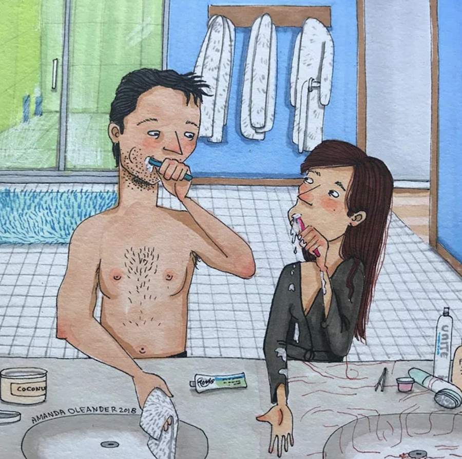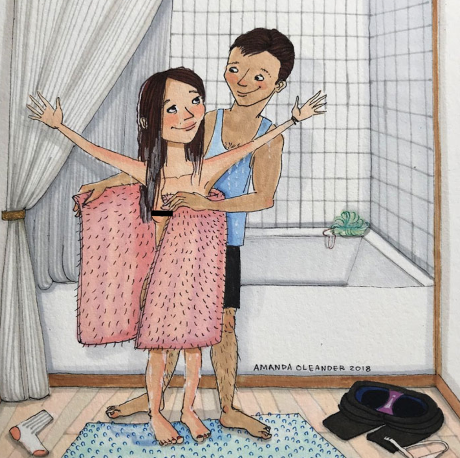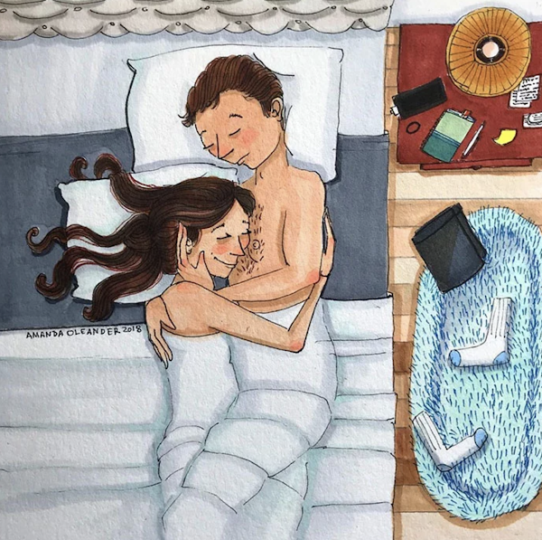 Pues en eso consiste básicamente el trabajo de Amanda y lo cierto es que me ha gustado muchísimo. No es la primera vez que un ilustrador dibuja este tipo de situaciones, ya os hablé de las ilustraciones de Yehuda Adi Devir con su mujer.