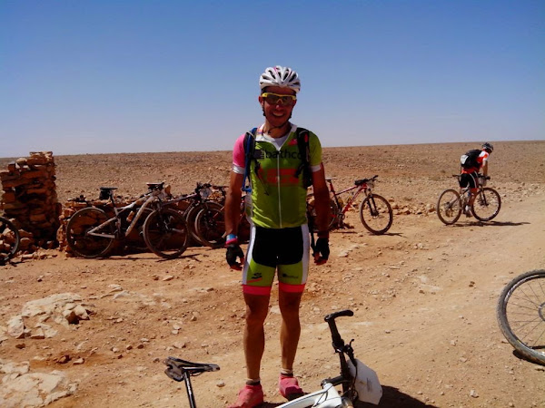 Aparentemente, era una etapa tranquila que, además, nos dejaba a los pies de las dunas de Erg Chebbi. Para los que disfrutamos de los grandes espacios naturales, el día tenía un atractivo especial. Desde siempre, el hecho de poder estar en un desierto de arena, en un Erg, que es como se denomina estas grandes dunas, me hacia mucha ilusión. Por otro lado, creía tener la solución a mis problemas del día anterior. Antes de iniciar mi viaje a Marruecos añadí a mi equipaje unos paquetitos de jamón de Teruel, y ese día supe que el jamón iba a ser la solución a mis problemas, y vaya si me ayudó... Llevábamos varios días comiendo barritas energéticas y geles. Al final, nos sentaron mal y las terminamos aborreciendo. Acabas por no tener ni hambre. Es cierto que son importantes, ya que tanto calor y sudor hace que pierdas muchas sales, pero hay que controlar su consumo. Ese día me llevé pequeños bocadillos de jamón y adiós a mis problemas de estómago.