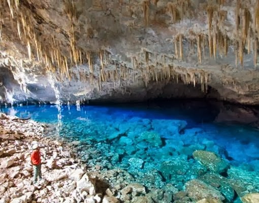 La belleza y peculiaridad de la cueva del Lago Azul de Brasil reside en cuando los rayos del sol penetran en esta enorme cueva y se produce un mágico efecto que tiñe las paredes de azul y belleza. Un cristalino lago de 70 metros de profundidad y deslumbrantes estalactitas formadas por la acción del agua a través de los años, son la postal que caracteriza a esta cueva , en el estado brasileño de Mato Grosso do Sur.