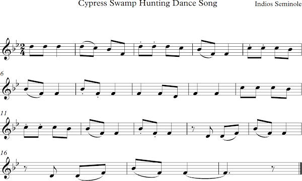 Cypress Swamp Hunting Dance Song. Partitura para flauta dulce. Canción Tradicional de los Indios Seminole. La podemos trabajar con los alumnos de 6º de Primaria.