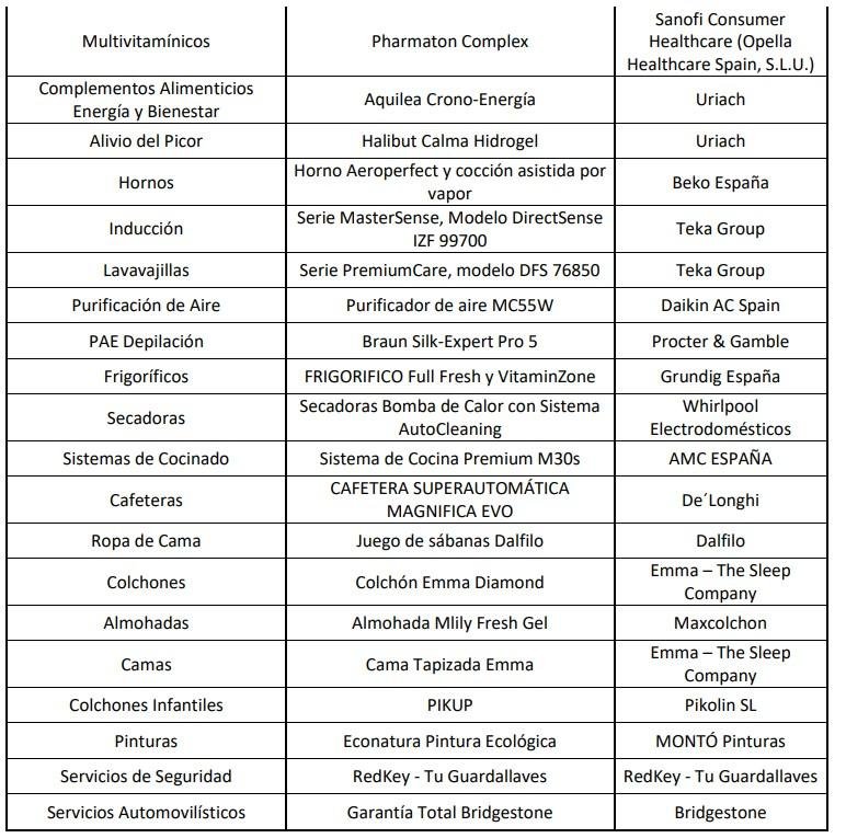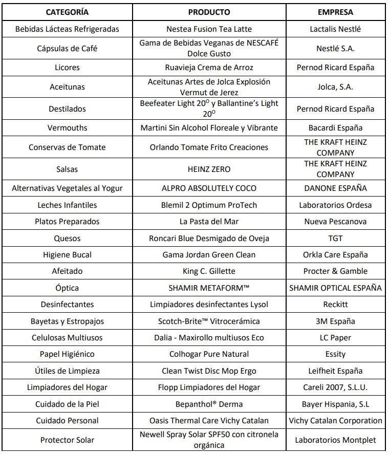 Estos son los 44 productos ganadores que corresponden a 47 empresas diferentes: