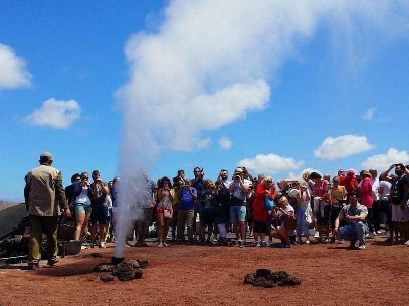 Esta zona de 51 km cuadrados situada entre los municipios de Yaiza y Tianjo alberga 25 de los volcanes de la isla. Declarado parque nacional el 1974, este lugar es visitado por más de 1.000.000 de personas anualmente. Desde el mirado situado en la zona conocida como el Islote de Hilario podrás disfrutar de unas magníficas vistas de las Montañas de Fuego.En esta zona podrás, además, comprobar personalmente la actividad volcánica latente del parque. A través de 3 experimentos podrás comprobar que, a pocos metros de profundidad, la temperatura llega a alcanzar los 600 grados centígrados, y en uno de ellos, podrás observar por ti mismo cómo se forma un geiser al evaporarse el agua y salir a gran velocidad cuando se introduce en unos tubos de 10 metros de profundidad.