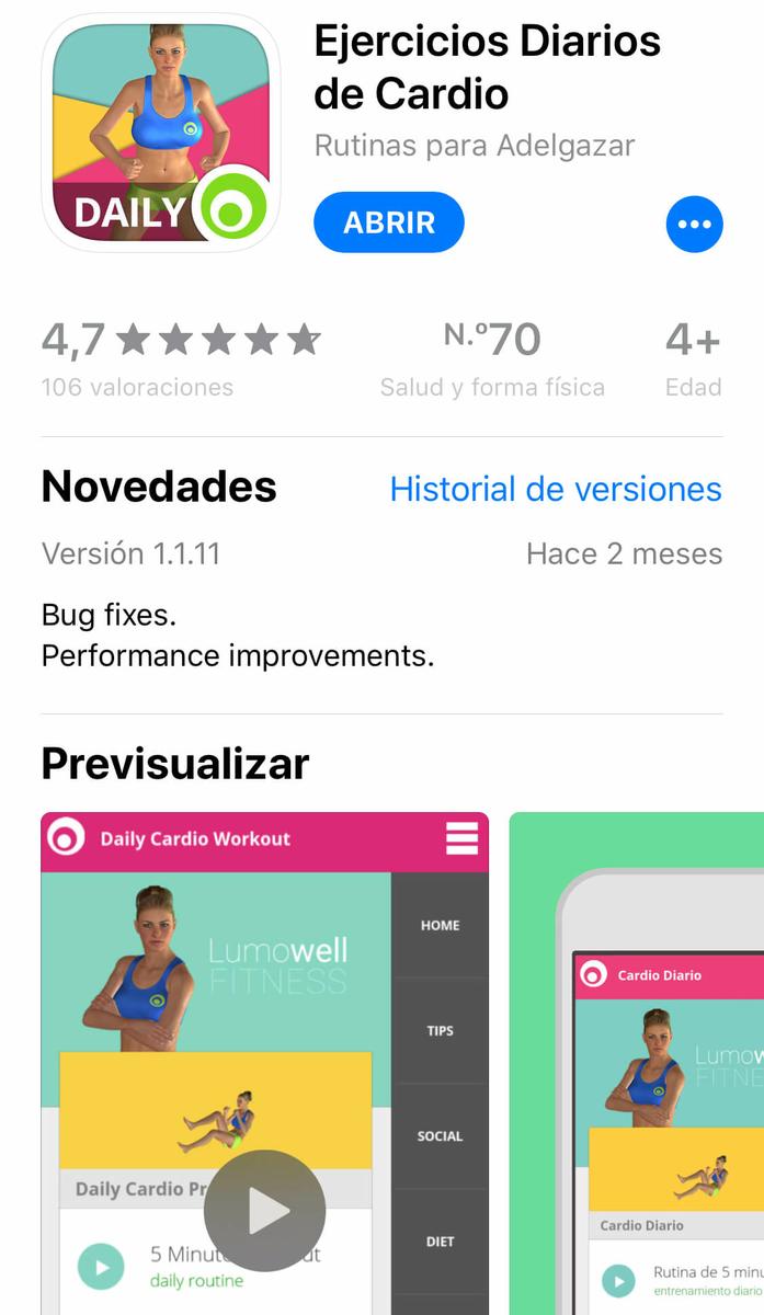 La segunda aplicación que os traemos, son unas rutinas de cardio diarias para adelgazar, por lo tanto, quemar grasa abdominal.
