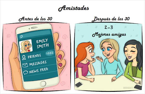 A medida que el tiempo pasa, las cosas cambian y no solo hablamos de nuestro fisico, sino en la forma en la cual tratamos a nuestra familia, salud, dinero y muchas cosas más.. Lo que quizás a los 20 años lo teníamos como prioridad, a los 30 ya no y, por ello, el portal BrightSide creó 9 ilustraciones graciosas que demuestran como es la vida de una mujer antes y después de los 30.