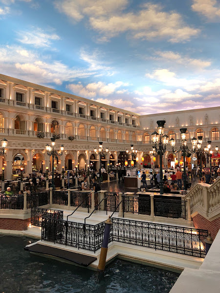 Mirad estas fotos, una reproducción de Venecia en un centro comercial incluidos sus canales y góndolas. Es como estar en la calle, pero con frescor de los aires acondicionados.