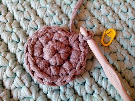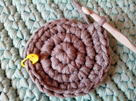 3ª VUELTA: Esta vez haremos 1 punto bajo y 1 punto más un aumento, es decir, 1 punto bajo, 2 puntos bajos, así toda la vuelta hasta obtener un total de 24 puntos bajos.