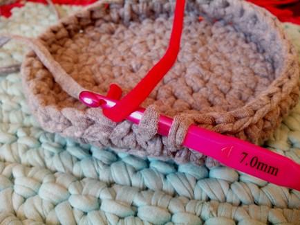 A medida que vayáis avanzando la cesta se irá abombando, entonces sera el momento de dar la vuelta a la base y seguir con los puntos bajos...