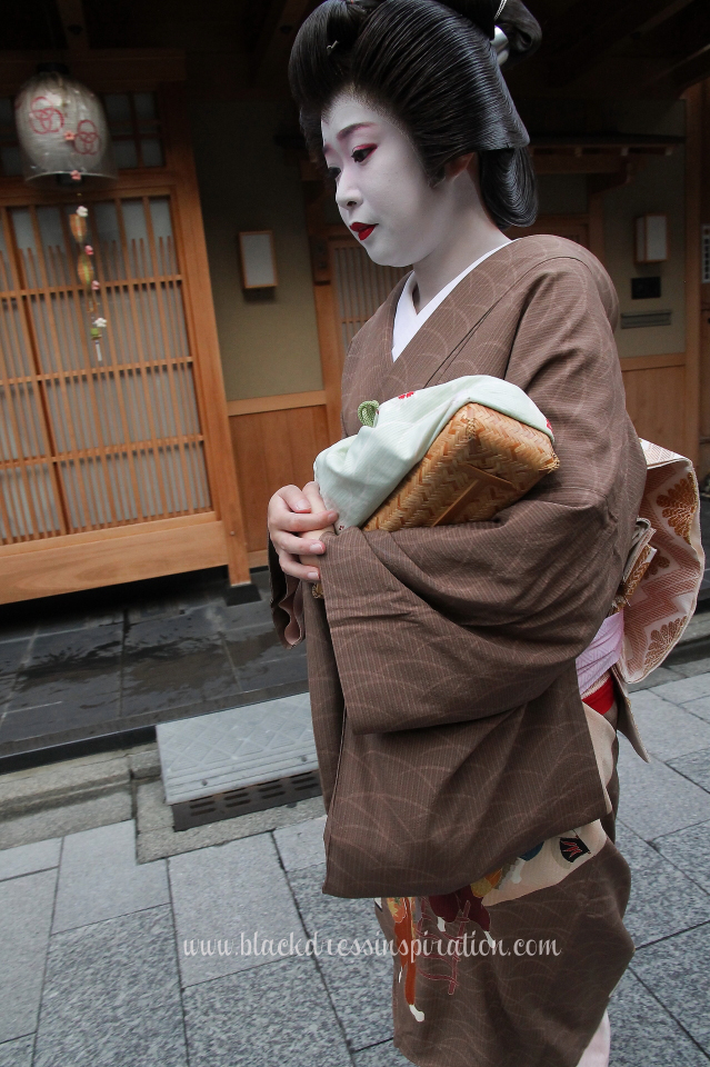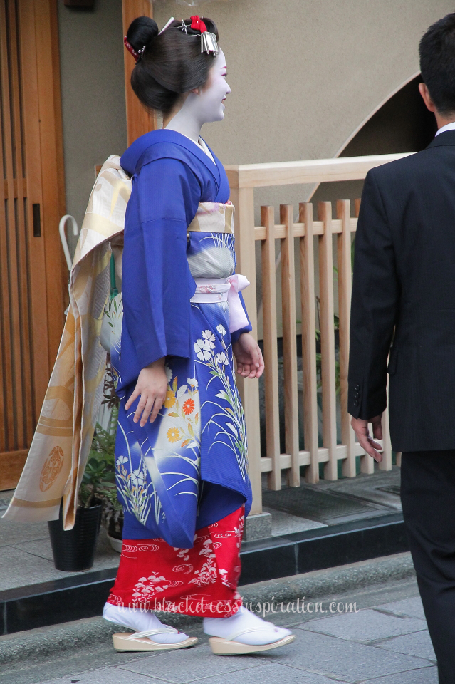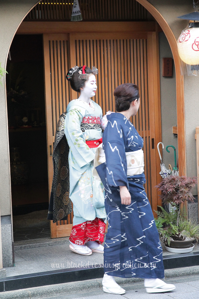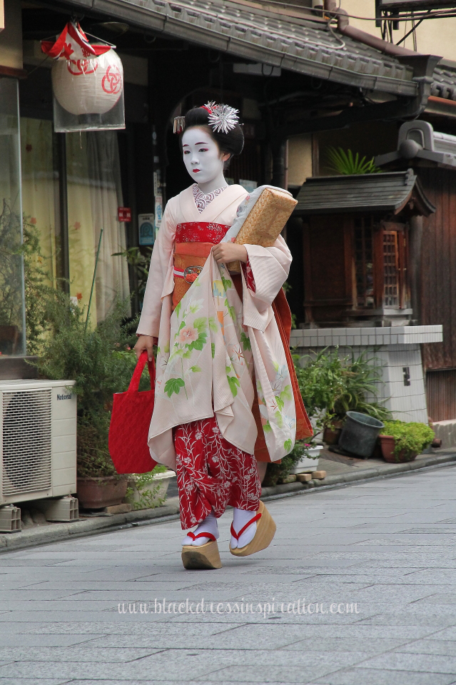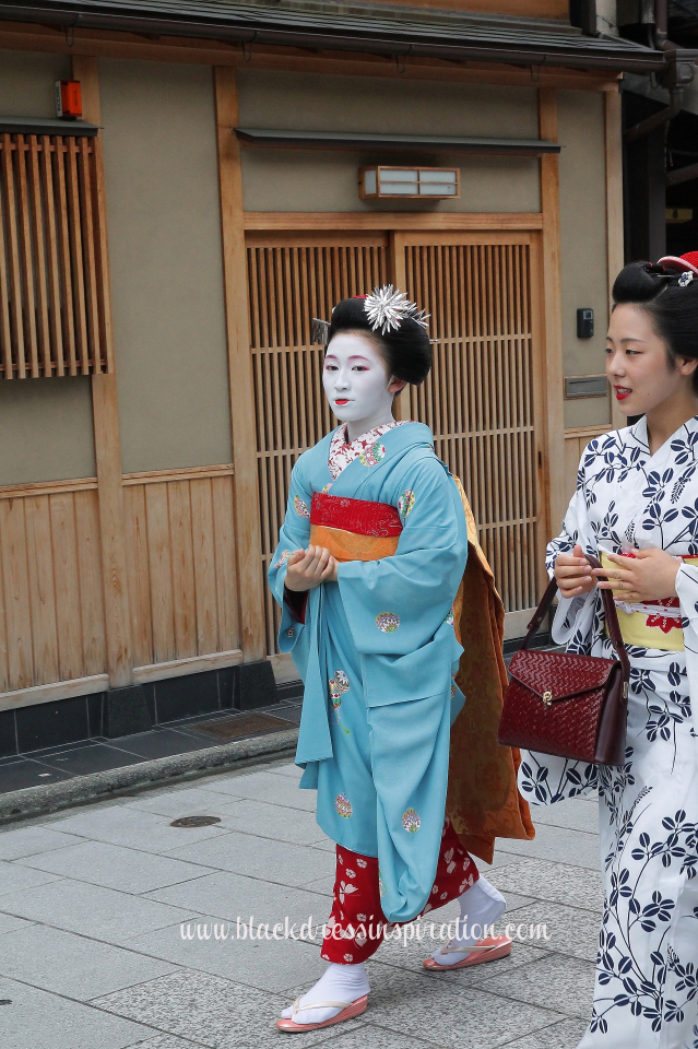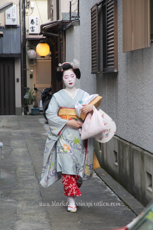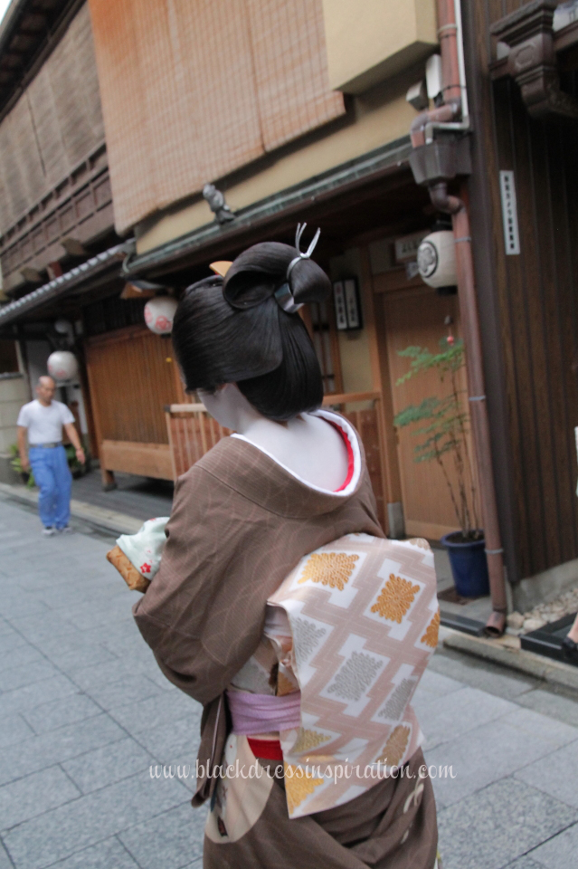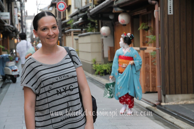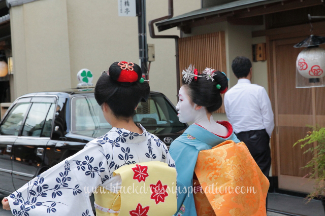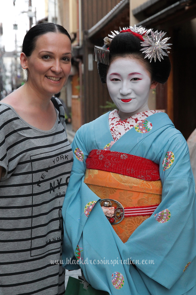 Cuando planeas viajar a Japónuna de la primera cosas que piensas es que verás a las Geishas, pero cuando estás allí te das cuenta que realmente es bastante complicado. En nuestro caso después de estar dos días dando vueltas por las calles del barrio de Gion en Kyoto sin dar con ellas decidimos que no nos íbamos a ir sin verlas, y para ello aquella noche buscamos en internet toda la información que pudimos encontrar sobre las Geishas. Normalmente la gente (como nos pasó a nosotros) van por las calles del barrio de Gion donde están los restaurantes con los famosos farolillos rojos, pero allí está el error. Por esas calles solo se pueden ver si coincide que estás en la puerta de uno de los restaurantes donde para el taxi para que entren a trabajar. Así que el día que las pudimos ver nos desplazamos hasta las calles menos turísticas donde están sus Okiyas (casas donde residen junto a otras Maikos y Geishas bajo el cuidado de su "madre" llamada Okasan). Una vez allí pudimos ver que es cierto que las entradas de las casas donde ellas viven están decoradas con el famoso farolillo blanco encendido y las tablillas con sus nombres. Fue impresionante el momento en el que las empezamos a ver aparecer una tras otra saliendo relajadamente de sus casas para coger los taxis. Pudimos fotografiarlas sin problemas aunque ninguna accedía a parase para hacerse una foto con nosotros. Pero llegó el momento más mágico de mi viaje a Japón, una niña japonesa que estaba al lado mío le pidió a una Maiko hacerse una foto con ella y esta accedió, después le pregunté si yo también podía y sin poder creérmelo me dijo que si. Fue impresionante poder observarla tan de cerca y poder así ver todos sus detalles. Como el día de antes leí tanto sobre ellas pude diferenciar cuales eran Maikos (aprendices de Gheisa) y cuales Geishas, ya que las primeras llevan ropas más vistosas, los peinados son un poco más sencillos, sus ojos van pintados en tonos más rojos, el blanco de la cara no llega hasta la raíz del pelo, únicamente llevan el labio inferior pintado de rojo y tanto las mangas del kimono como el fajin son bastante más largos que los de una Geisha pudiendo llegar hasta el suelo. Sin duda este momento tan bonito nunca lo olvidaré.