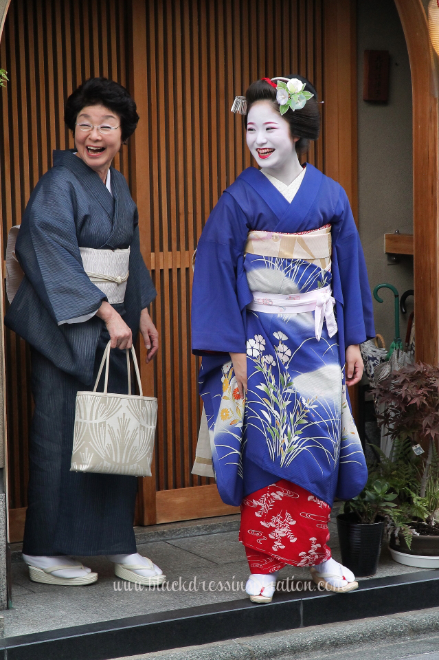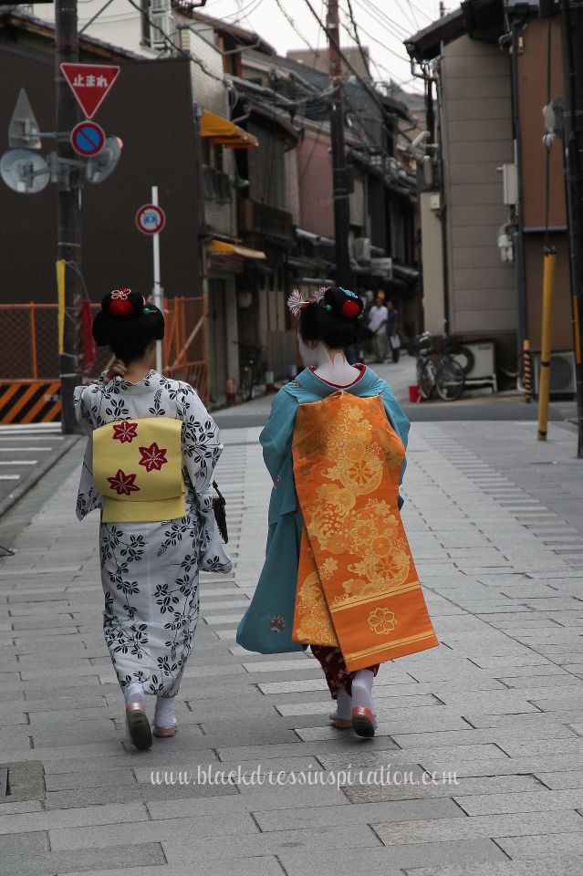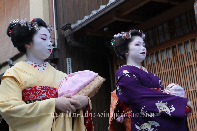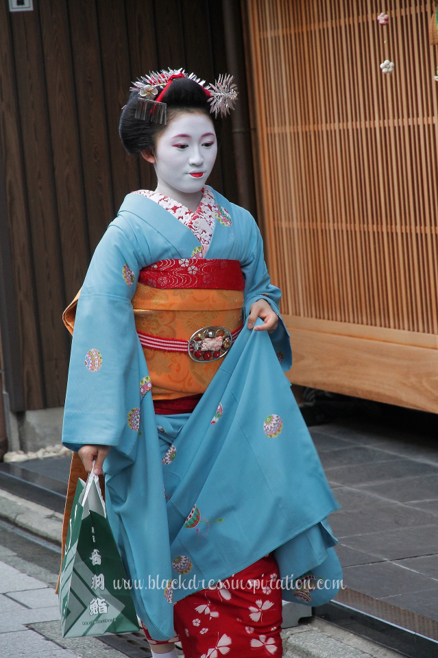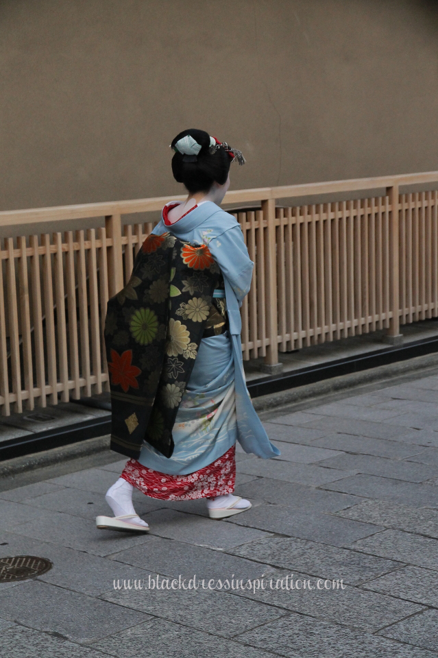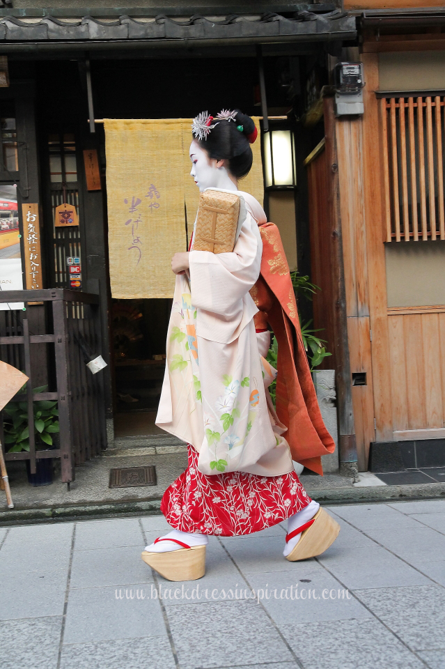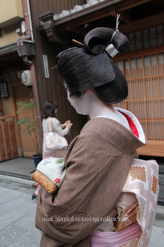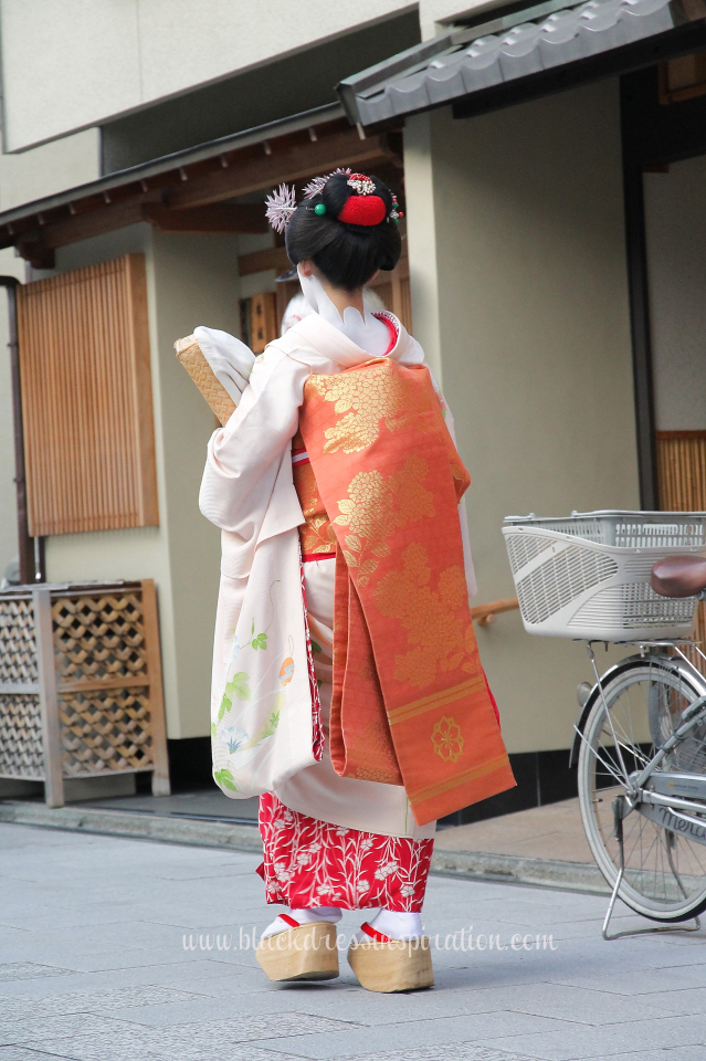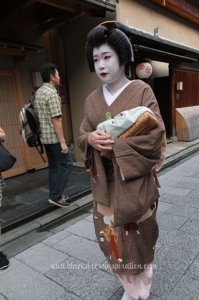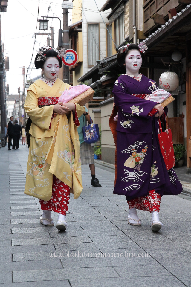 Cuando planeas viajar a Japónuna de la primera cosas que piensas es que verás a las Geishas, pero cuando estás allí te das cuenta que realmente es bastante complicado. En nuestro caso después de estar dos días dando vueltas por las calles del barrio de Gion en Kyoto sin dar con ellas decidimos que no nos íbamos a ir sin verlas, y para ello aquella noche buscamos en internet toda la información que pudimos encontrar sobre las Geishas. Normalmente la gente (como nos pasó a nosotros) van por las calles del barrio de Gion donde están los restaurantes con los famosos farolillos rojos, pero allí está el error. Por esas calles solo se pueden ver si coincide que estás en la puerta de uno de los restaurantes donde para el taxi para que entren a trabajar. Así que el día que las pudimos ver nos desplazamos hasta las calles menos turísticas donde están sus Okiyas (casas donde residen junto a otras Maikos y Geishas bajo el cuidado de su "madre" llamada Okasan). Una vez allí pudimos ver que es cierto que las entradas de las casas donde ellas viven están decoradas con el famoso farolillo blanco encendido y las tablillas con sus nombres. Fue impresionante el momento en el que las empezamos a ver aparecer una tras otra saliendo relajadamente de sus casas para coger los taxis. Pudimos fotografiarlas sin problemas aunque ninguna accedía a parase para hacerse una foto con nosotros. Pero llegó el momento más mágico de mi viaje a Japón, una niña japonesa que estaba al lado mío le pidió a una Maiko hacerse una foto con ella y esta accedió, después le pregunté si yo también podía y sin poder creérmelo me dijo que si. Fue impresionante poder observarla tan de cerca y poder así ver todos sus detalles. Como el día de antes leí tanto sobre ellas pude diferenciar cuales eran Maikos (aprendices de Gheisa) y cuales Geishas, ya que las primeras llevan ropas más vistosas, los peinados son un poco más sencillos, sus ojos van pintados en tonos más rojos, el blanco de la cara no llega hasta la raíz del pelo, únicamente llevan el labio inferior pintado de rojo y tanto las mangas del kimono como el fajin son bastante más largos que los de una Geisha pudiendo llegar hasta el suelo. Sin duda este momento tan bonito nunca lo olvidaré.