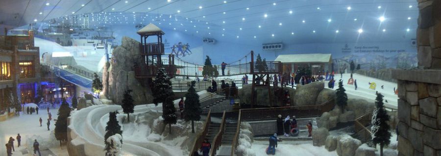 Un ejemplo de pista artificial es el que se lleva a cabo en el enorme centro comercial de Dubai, el denominado Ski Dubai. Debido a las altas temperaturas del exterior a lo largo de casi todo el año, se hace imposible disfrutar de este deporte, por lo que se ha habilitado este gigantesco espacio, el cual cuenta con más de 22.500 metros cuadrados de nieve.