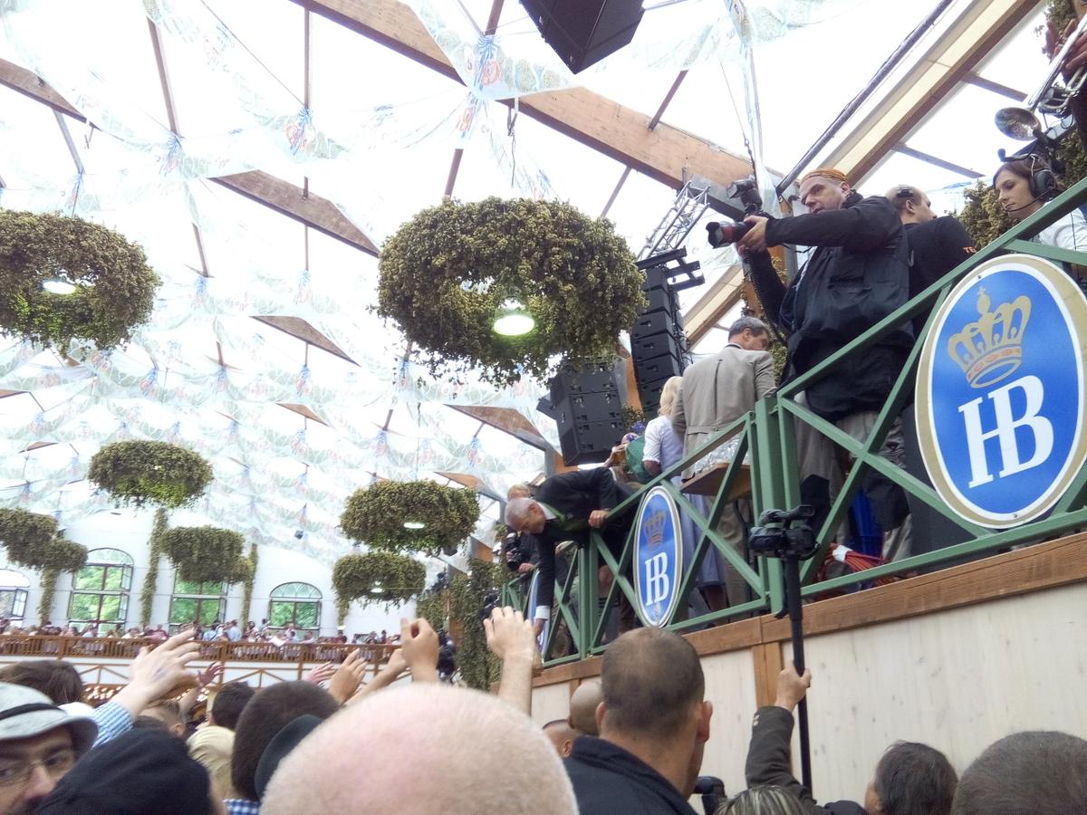 – si aun así no podéis conseguir mesa, en la mayoría de las carpas dejan estar de pie, como en la Hofbräu, y hay algunas que tienen mesas de uso libre, como en la Pschorr; en ese caso, el truco es interceptar a un camarero y pagar directamente en efectivo por las jarras que vayamos a pedir