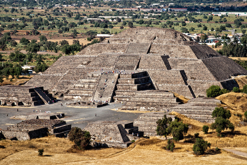 2. Pirámide del Sol (Teotihuacan)Esta pirámide más grande también se encuentra en la ciudad de los dioses, y es anterior a todas las estructuras mayas por varios siglos. Al igual que su pirámide hermana, imita la forma de las montañas locales y contiene varias tumbas que se crearon durante las diferentes capas de construcción. Esta es la más alta de todas las pirámides aquí, y se cree que es el sitio de muchas ceremonias mágicas. Los arqueólogos encontraron un conjunto de cámaras en forma de hoja de trébol en el interior de la pirámide que se cree que albergan muchos rituales de fuego y agua.
