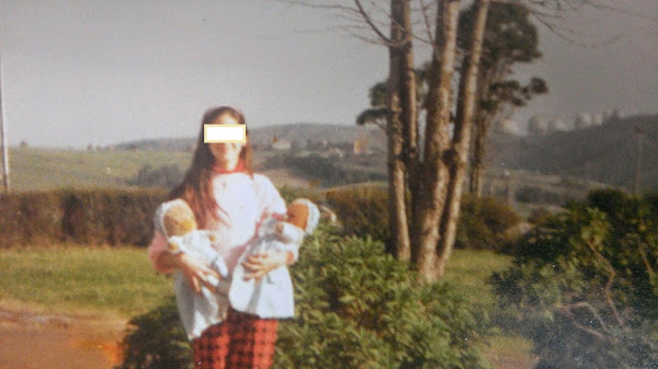 Yo soy la de atrás, la que sujeta la muñeca y mi hermana es la de delante