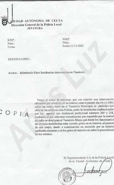 El lunes 11 de Noviembre de 2002,la ciudad de Ceuta se despertaba con los titulares en la prensa de "Voces de ultratumba en en Tanatorio"..