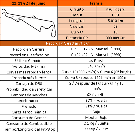 Dos semanas después del último GP de F1 y diez años más tarde del último GP francés, el pais galo vuelve a albergar una carrera de la máxima categoría del automovilismo, y no puede ser en mejor momento ya que, aunque las últimas carreras no han sido del todo emocionantes, el mundial está más caliente que nunca con Sebastian Vettel liderando solo con un punto por delante de Lewis Hamilton, mientras que Mercedes, con 17 puntos de ventaja, lidera sobre Ferrari el campeonato de constructores.