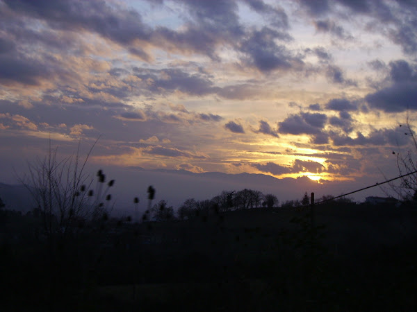 A la vuelta, con las manos negras y muertos de hambre paramos en un rincón junto al río y allí, igual que en las pelis inglesas saqué el mantel de cuadros y cenamos en plan picnic. Por la zona hay mesas pero ellos querían un picnic de verdad, sentados en el suelo. Después reposamos mientras veíamos como la tarde iba declinando poco a poco. Yo no sé que pasa por esta tierra mía pero al atardecer todo huelo mejor, y embriagados de los aromas del ocaso jugamos un poco y después volvimos a casa, cansados pero con esa sensación de haber tenido un día perfecto.