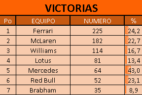 Por parte de los equipos, tenemos que Mercedes aumentó su número de podios a 130, mientras que Ferrari ya cuenta con 708, sin embargo, los alemanes cuentan con un 87% de efectividad, mientras que los italianos con un 76%.