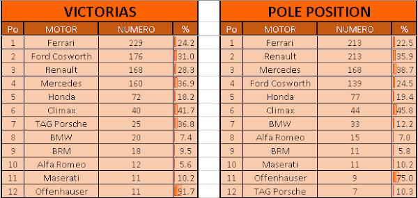 Por otra parte, el equipo Mercedes está un poco más cerca de los líderes históricos en lo que respecta a las pole position, el conjunto alemán ha salido en primera posición 85 veces, es el número 5 en la historia, siendo Lotus, su objetivo a batir más cercano con 107.