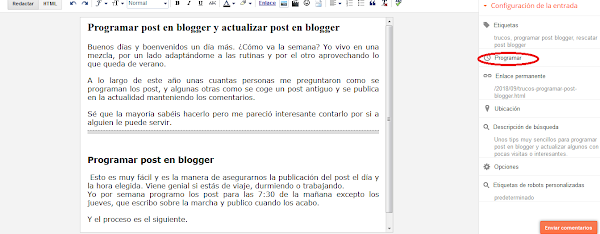 Programar post en blogger y actualizar post en blogger