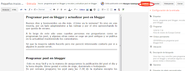 Y una vez hecho esto le damos a publicar, y no tengáis miedo que no se publica al momento, queda programado.