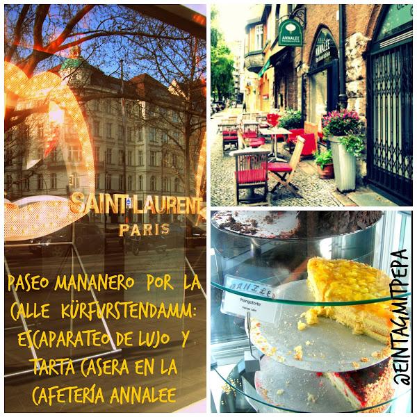 09:30 El primer día te recomiendo que te levantes temprano y cojas un café para llevar: Kaffee zum mitnehmen, bitte! Prepárate para zapatear la milla de oro berlinesa Ku´Damm. Yo que tú empezaría el paseo aproximadamente a la altura de la plaza Olivaer Platz, dirección Tauentzienstraße. Las líneas de autobús M29 y M19 recorren la avenida de un extremo a otro, por si te entra el cansancio. Pasearás por delante de las tiendas más divinas, escaparateando sin parar. Pero no hay nada como hacer una pausa en tu camino y tomar una tarta casera en la adorable cafetería AnnaLee que se encuentra en una callejuela paralela. Es un lugar especial, muy vintage y con muchísima personalidad.