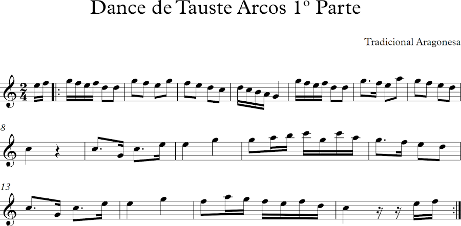 Dance de Tauste Arcos 1º Parte. Partitura para flauta de danzas Aragonesas. La englobaremos dentro del nivel avanzado.