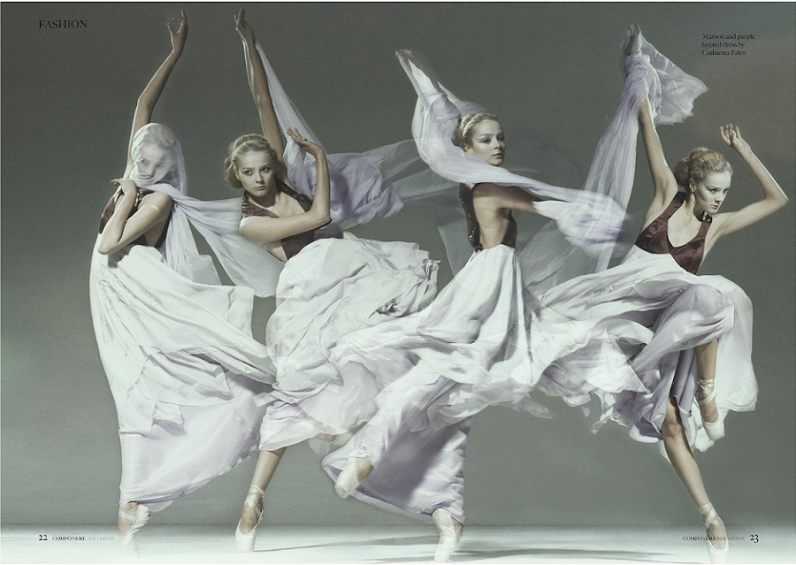 Para esta editorial de Componere Magazine se contó con la bailarina Portia Van de Braam del Spellbound Ballet vestida con diseños de alta costura y el encargado de secuenciar los movimientos de la bailarina fue el fotografo Jan Masny .