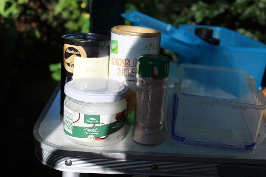 imprescindible en este viaje, Maca, aceite de coco, para cocinar, Azucar de Coco ( el azucar de coco, tiene bajo índice glucémico y en ocasiones lo como.