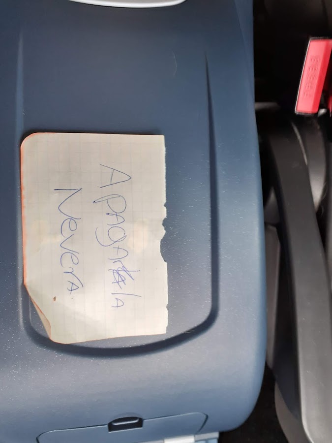 Le añadimos una notita recordatoria de apagar la neverita por que adivinen que! la primera noche que la estrenamos se nos olvido desconectarla y nos consumió todaaaaa la batería del auto. UFF!!! vaya mañana cuando nos despertamos. Por suerte pudimos resolver