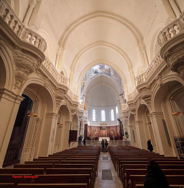 Presenta una planta de salón formada por un ábside o capilla mayor cuadrangular y una nave rectangular, una sacristía pegada al muro norte del ábside y una capilla lateral (la de la Ermida Vella) haci ...