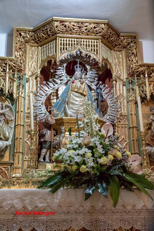 Las características arquitectónicas siguen los mismos parámetros que el resto de iglesias barrocas de la localidad. En el interior destaca el retablo en el altar mayor obra del tallista daimieleño Pedro López Villaseñor, de mediados del siglo XVIII