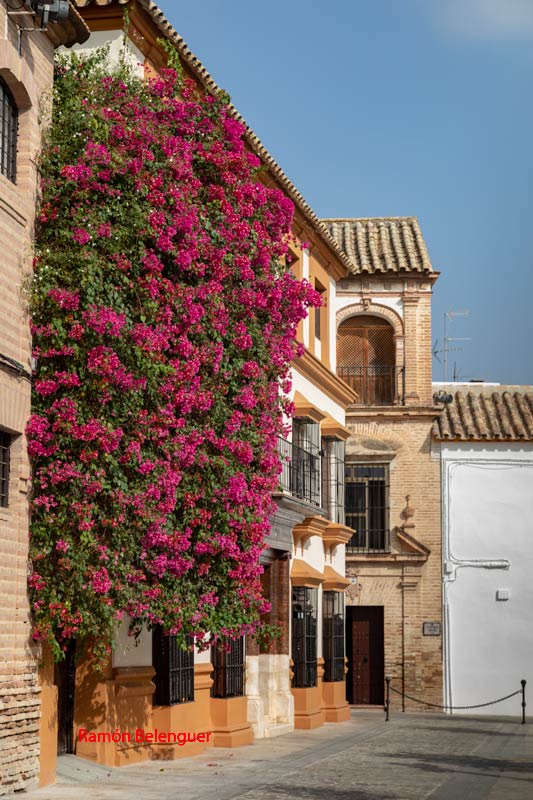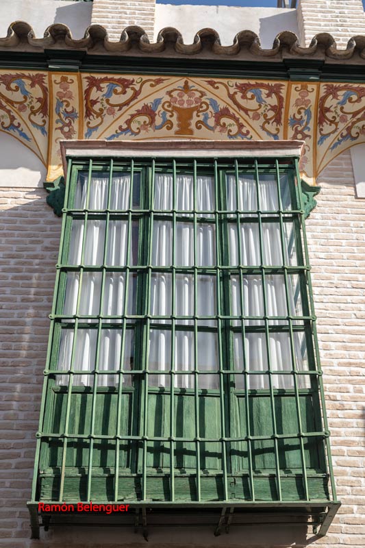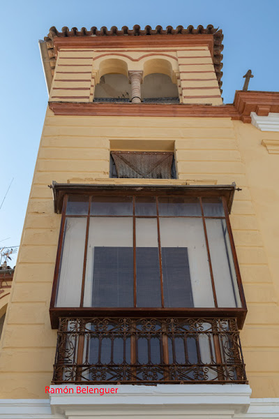 A un lado y otro del mismo, parejas de balcones corridos con herraje de hierro colado sevillano.