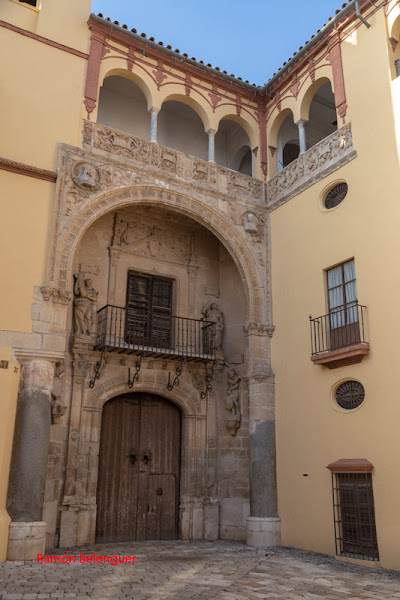 Esta casa palacio se ubica en la Calle de San Pablo. Ocupa una gran superficie y se estructura en torno a dos patios, uno de los cuales desempeña la función de apeadero. Este apeadero es cuadrangular y en uno de sus frentes, en el mismo eje de la puerta de acceso, posee una triple arcada de medio punto sobre columnas de mármol blanco.