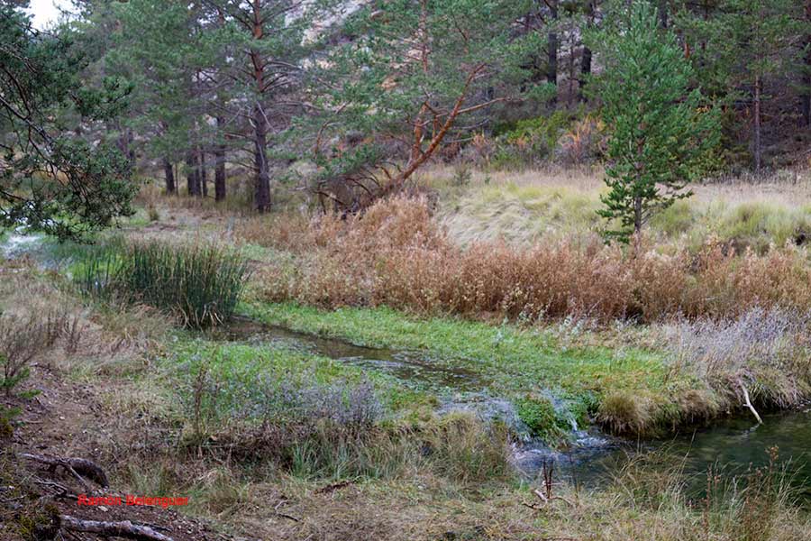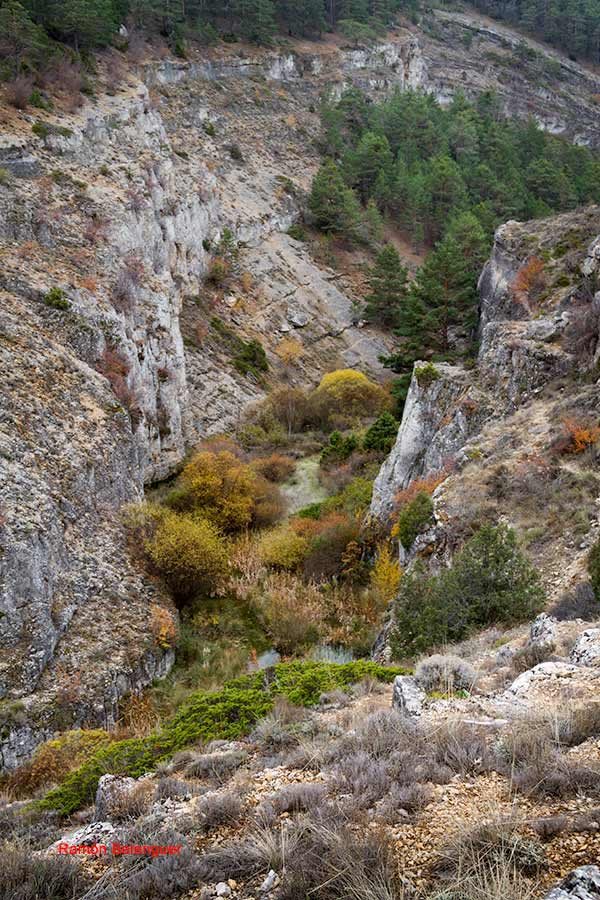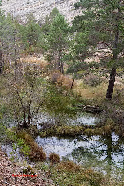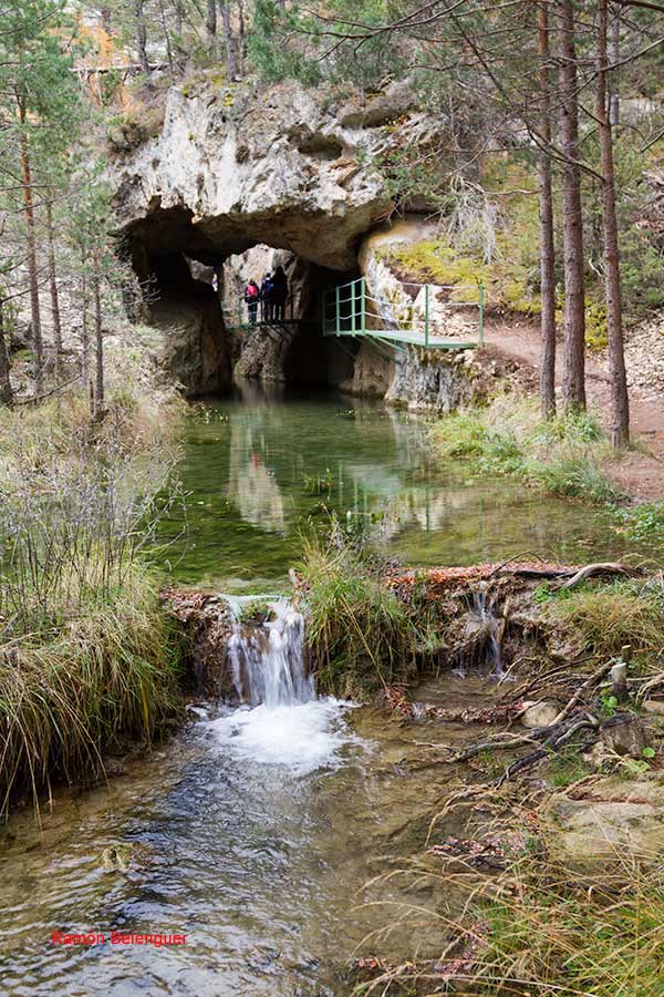 Pasado el Moricacho, se llega a la Presa de los Ahogados, desde donde el barranco se encañona, teniendo que ascender un pequeño desnivel, para bajar poco después de nuevo al cauce donde nos esperan dos pequeños Puentes de Toba, desde ellos la ruta discurre encañonada discurriendo por su lateral y cruzando el rio por varias pasarelas hasta salir a un pinar por donde pasearemos un ratito. Finalizamos la ruta en la antigua Tejería y en el Molino de las Pisadas. La ruta se puede continuar hasta la Fuente del Berro o hasta Frías de Albarracín