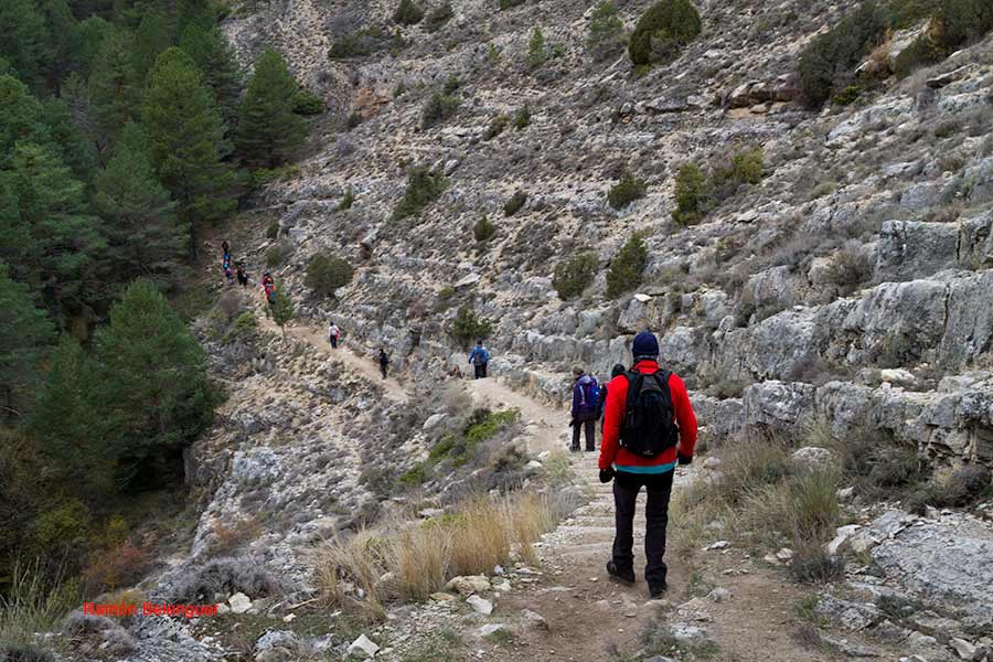 La ruta empieza al final de pueblo, donde se puede aparcar fácilmente, empieza en un sendero que arranca al lado del río indicado como el Cañón de los Arco, el recorrido pasa por debajo del Moricacho, se trata de una aguja rocosa que dispone de dos vías de escalada una por el lado del pueblo equipada con parabolts, y por el otro una vía mucho más exigente, de Armand Ballart: Via Westfàlica (70 m. MD+/A2) abierta en 2004.