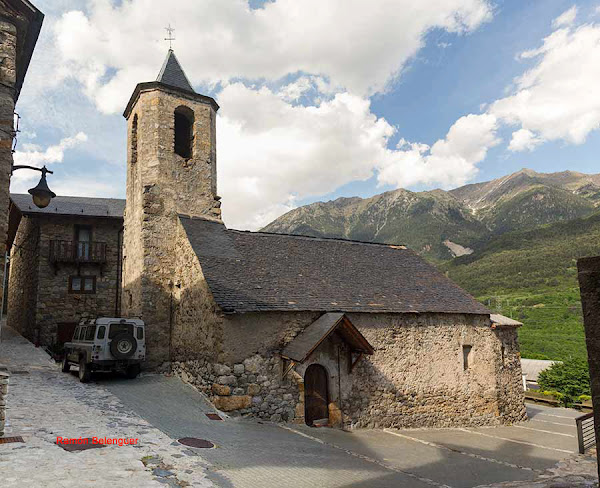 Aneto: Las casas están agrupadas a la iglesia parroquial construida en el siglo XVIII y fuera del casco antiguo tiene otra pequeña y más antigua iglesia junto al cementerio.