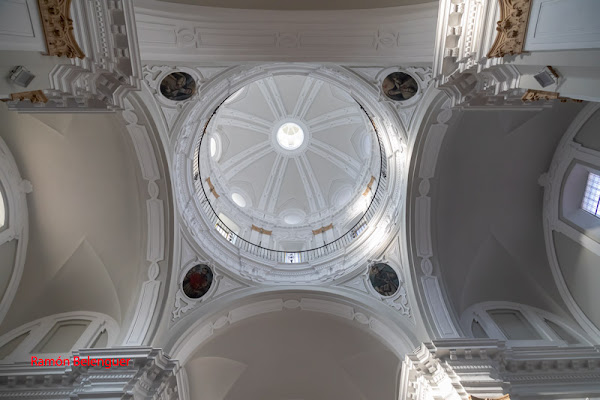 El crucero exhibe en su centro una elegante cúpula sobre pechinas con decoración pictórica alusiva a santos de la orden. La gran cúpula que inunda esta zona del interior de una suave atmósfera de luz, se compone de elevado tambor, elemento cupuliforme y airosa linterna. El tambor encaja sus ventanales entre pilastras pareadas. Sobre estos huecos lucen los óculos del elemento cupuliforme también entre gemelas pilastrillas. En los laterales del crucero hay dos retablos barrocos, uno situado en la nave del Evangelio y dedicado a la Virgen de las Dolores, y otro en la nave de la Epístola, que es el retablo del Sagrario, con una talla de San José.