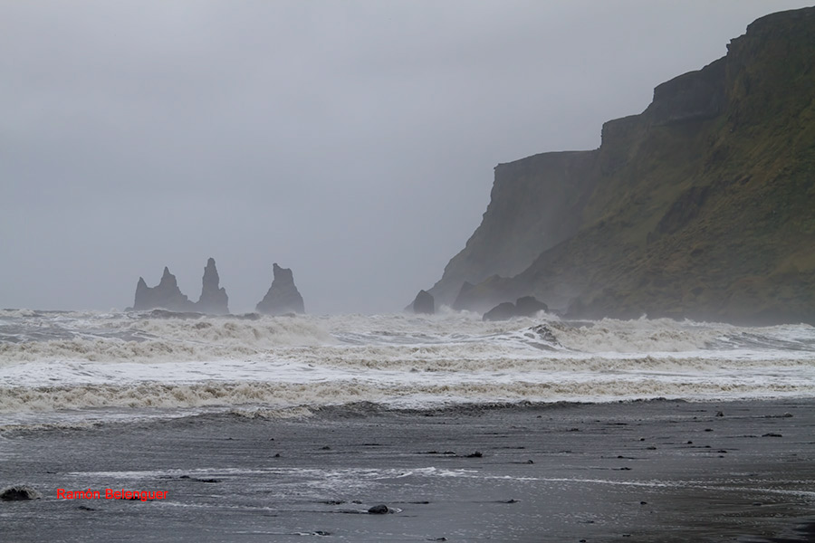 Destaca la playa de arena negra de Reynisfjara que se encuentra entre Reynisfjall y Dyrholae, que fue nombrada una de las diez playas de islas más bellas del mundo por la Islands Magazine en 1991, al finalizar Reynisfjarase encuentran el Reynishverfi y los tres troles. Cuenta la leyenda que tres gigantescos trolls intentaron separar los fiordos del oeste del resto de Islandia, pero mientras llevaban a cabo su maléfico plan, aparecieron los primeros rayos de luz del amanecer y los trolls se convirtieron en piedra. Allí quedaron petrificados y hoy día podemos disfrutar de estas rocas con unos nombres tan curiosos como su leyenda: Skessudrangar, Landdrangar y Langhamrar.