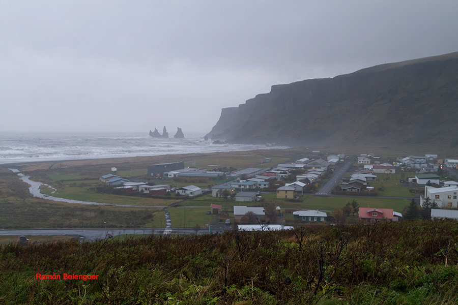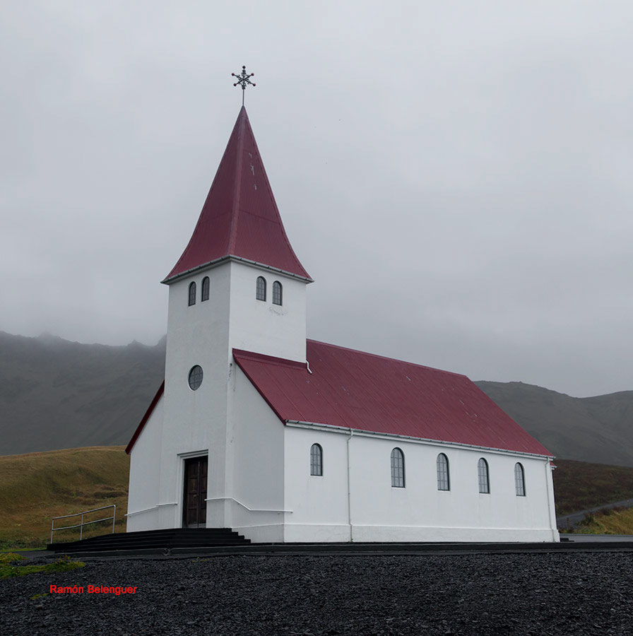 Vik I MyrdalLa localidad de Vik i Myrdal se encuentra en la punta sur de Islandia. Por encima del pueblo de Vik se encuentra el glaciar Myrdalsjokull de 700km cuadrados que esconde en su interior el poderoso volcán Katla, que entro en erupción por última vez en 1918. Destaca por el contrastre entre el verde de la vegetación y el rojo del techo la iglesia Reynir.
