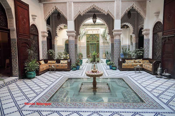 Barrio Judío o Mellah: El primer mellah oficial se estableció en la ciudad de Fez en 1438. En esa fecha, los judíos fueron trasladados desde la parte antigua de Fes a Hims, que había sido construida en un lugar conocido como al-Mallah, El salinar. Con el tiempo, el término se empleó para designar a los barrios judíos de otras ciudades de Marruecos. El barrio del Mellah, o judería, es el barrio estructurado más antiguo del país