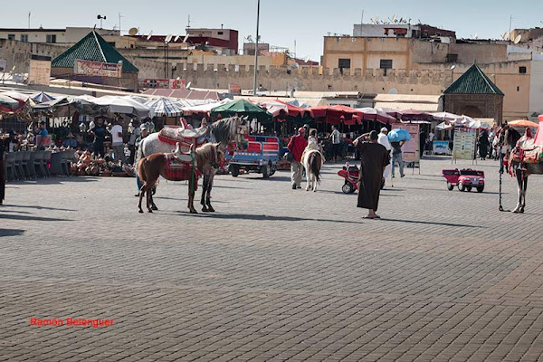 Plaza El Hedim: la miniatura de Jamaa El Fna: Esta plaza limita por un lado con la Ciudad Imperial y con la Medina por el otro.
