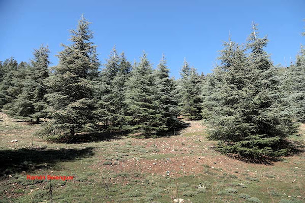 bosques de Cedros: su mayor esplendor lo alcanzan en las proximidades de Khenifra, los bosques próximos a Ifrane no se quedan atrás. Se trata generalmente de bosques de cedros y encinas - donde esta última va adquiriendo poco a poco un mayor protagonismo-, con presencia de enebros (Juniperus oxycedrus) y donde podemos encontrar otras especies típicas del clima frío de montaña, como el acebo (Iles aquifolium).- A media distancia entre Ifrane y Azrou por la N8 hay un desvío al este señalizado por el que accedemos al cedro Gouroud, el más grande de la región aunque ya muerto por una plaga de procesionaria a principios de milenio.