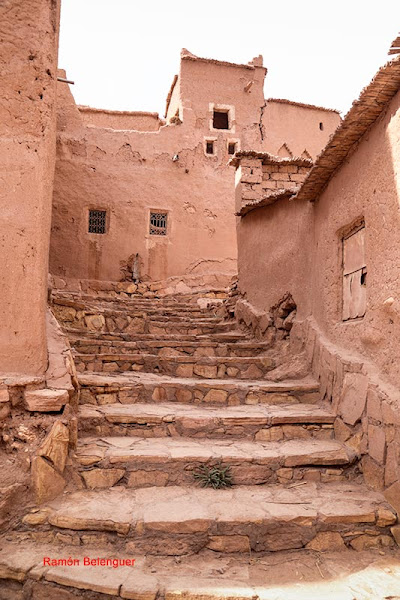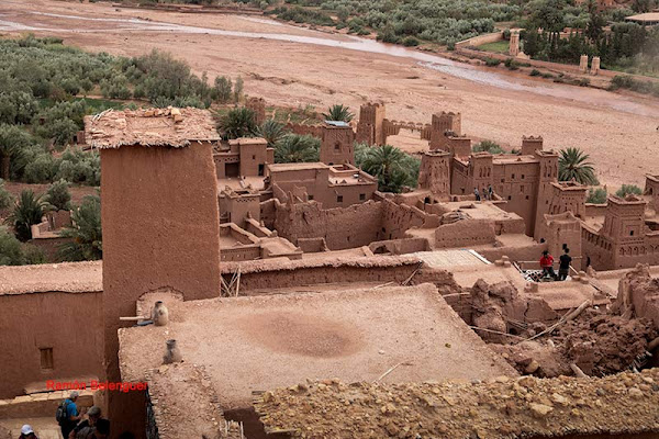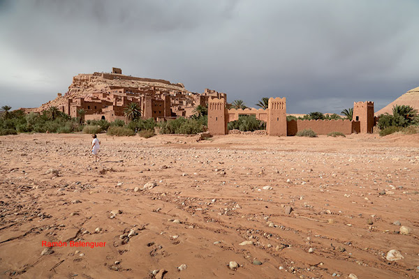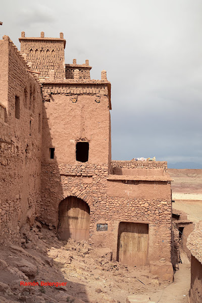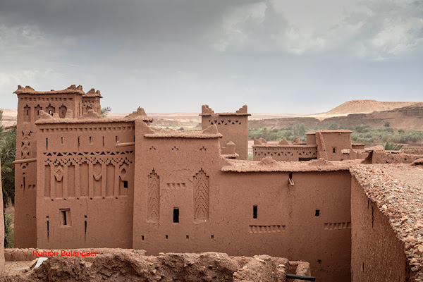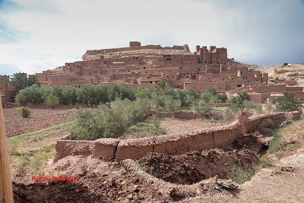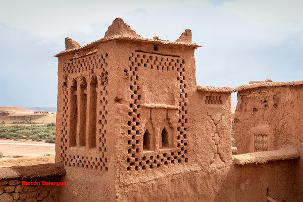 Ait Ben Haddou es una fortaleza construida de adobe (arena, arcilla, agua y, a veces, material orgánico como paja o estiércol que, una vez moldeado, se deja secar al sol), coronados por torres que sirven de defensa, en lo que podría considerarse el equivalente a los castillos medievales. Los Ksar fueron antiguamente grandes pueblos bereberes en el desierto de Marruecos, amurallados y diseñados con el objetivo de defender las casas, las cosechas y los palmerales que crecen junto a sus cauces. Estos pueblos formaban grandes comunidades agrarias y mercantiles con una visión muy particular sobre el Islam.