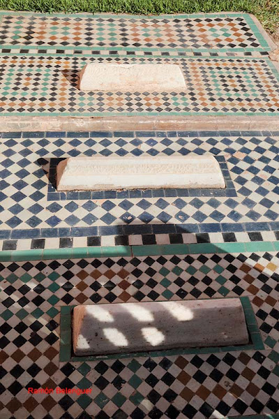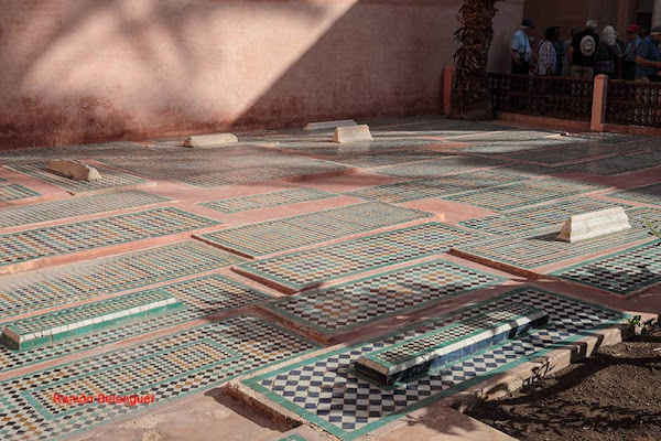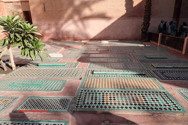 En el mismo jardín se pueden ver más de 100 tumbas decoradas con mosaicos. En ellas están enterrados los cuerpos de los sirvientes y guerreros de la dinastía saadí.