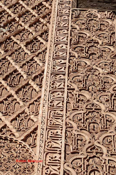 El punto central de la visita es el gran Patio de Honor, de 50 metros de longitud, se encuentra rodeado por una galería a la que dan las habitaciones que ocupaban las cuatro esposas y las 20 concubinas del gran visir. La estancia que más va a sorprenderte por su belleza arquitectónica es la Sala del Consejo, con sus paredes alicatadas con porcelana y el techo de madera de cedro pintado. Si hay algo que achacar a este palacio es que todas sus habitaciones se encuentran vacías. Cuando murió el visir mucha gente, incluidas sus esposas y el propio sultán, decidieron desvalijar por completo cada una de las estancias.